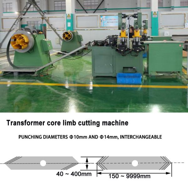Transformer core cutting machine ZZ400-BK is a step lap type iron core limb cutting machine, which can be used to cut silicon steel to make transformer core limb. The cutting machine can punch holes on the limb. The hole’s diameter can be different as requested. This kind of Línea de corte por longitud can be used to cut the strip with maximum width 400mm. Cutting equilateral core limb, eccentric core limb (eccentric angle can be adjusted as requested), step lap core limb, same core limb, and so on are the main functions of the cutting machine. The cutting machine is with PLC control system.